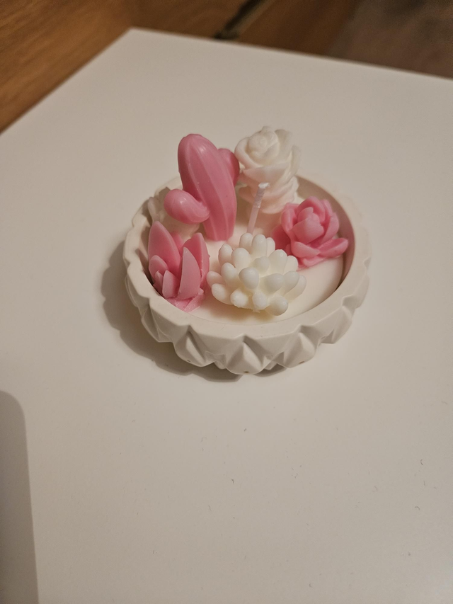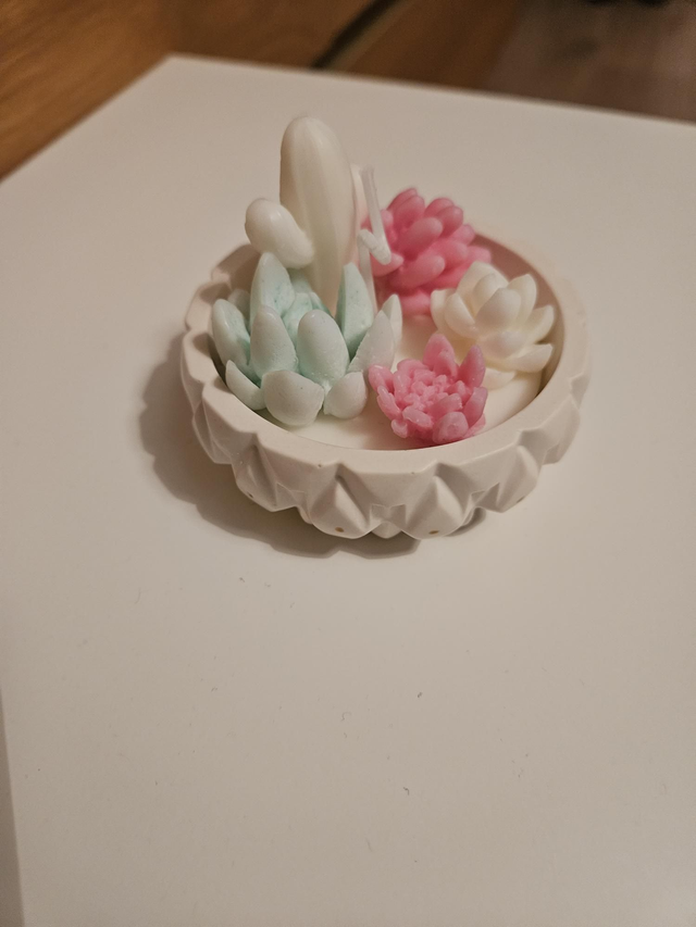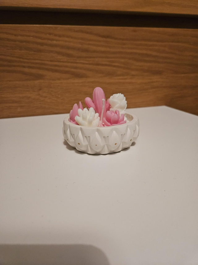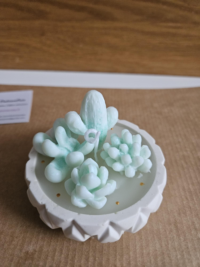 Jolie bougie dans un pot fait main ornée de cactus en bougie fait main